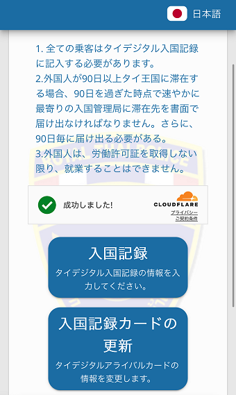 「タイ デジタル入国カード」公式ホームページにアクセス