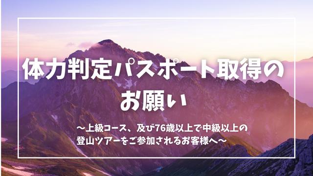 【中級レベル以上】**のツアーにおいて**「体力判定パスポート」の取得を参加条件