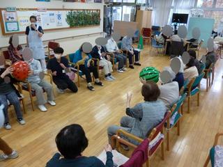 ボッチャで身体を動かしました。白いボールに近い方が勝ちです。